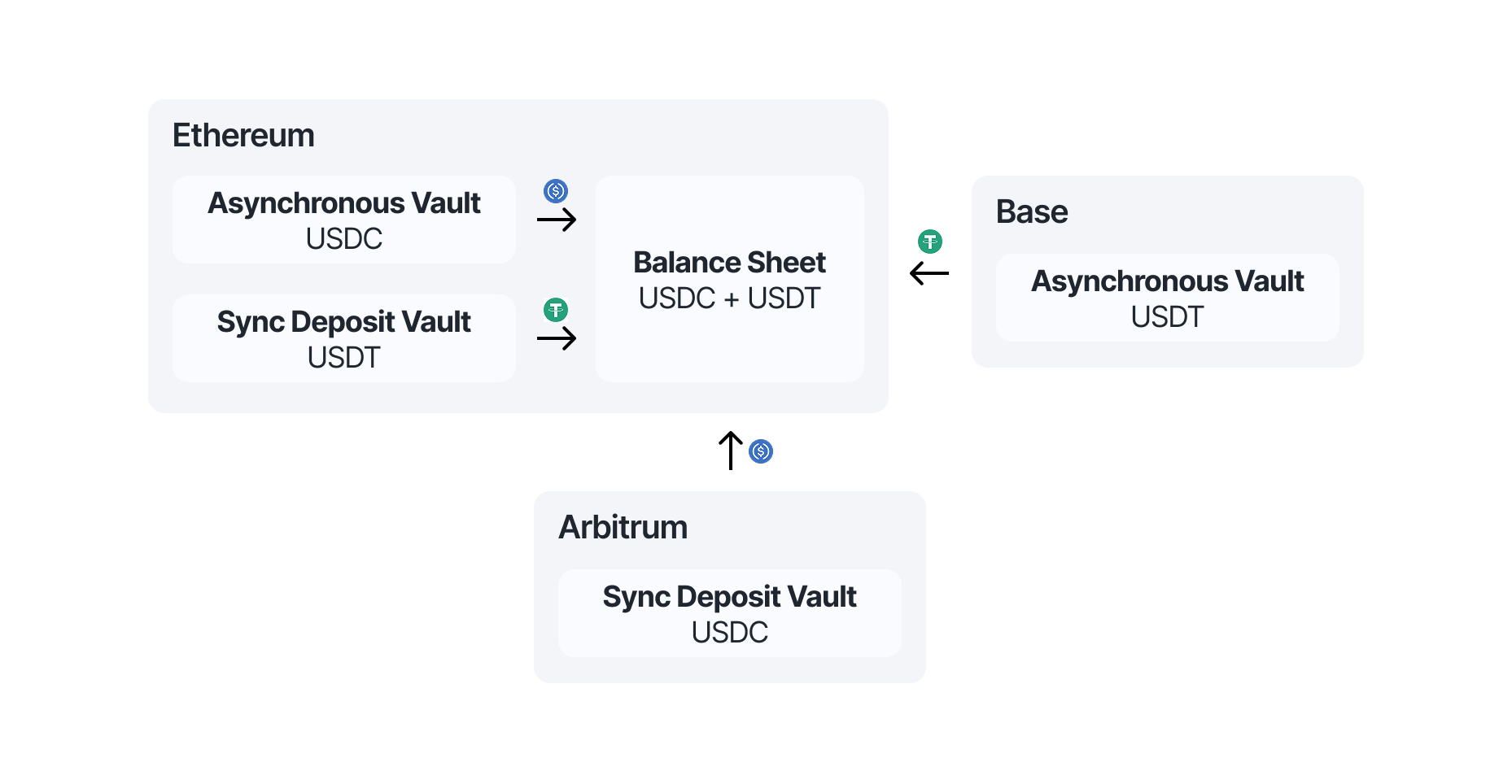 These vaults follow a hybrid model using both ERC-4626 and ERC-7540. Deposits are executed instantly using ERC-4626 behavior, allowing users to receive shares immediately. However, redemptions are handled asynchronously through ERC-7540, using the Hub to queue and manage the withdrawal requests.